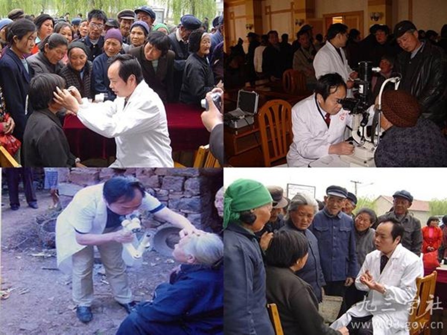 高富军心里始终牵挂着农村尤其是偏远山区的乡亲们。眼科医院成立第一年,高富军辗转争取到由香港盲人辅导会和亚洲防盲基金会捐赠给山东省卫生厅的1辆复明四号眼科手术车,利用8个月时间为沂蒙山区的几十个乡镇的5000多人义诊,施行白内障扶贫复明手术300余例。加入九三学社之后的高富军感觉到了组织的依靠和帮助,更加干劲十足。他提议九三学社临沂市委与眼科医院一道开展大规模眼病救助活动,即“助残复明、光明沂蒙”工程;后又积极参与到九三学社中央开展的“亮康行动”中。多年来,高富军和他的团队完成对临沂市180余个乡镇进行了6轮义诊工作,足迹踏遍800里沂蒙1万余个自然村,义诊30万人次,实施扶贫复明手术3万多例,累计为贫困的眼病患者支出费用3000余万元。