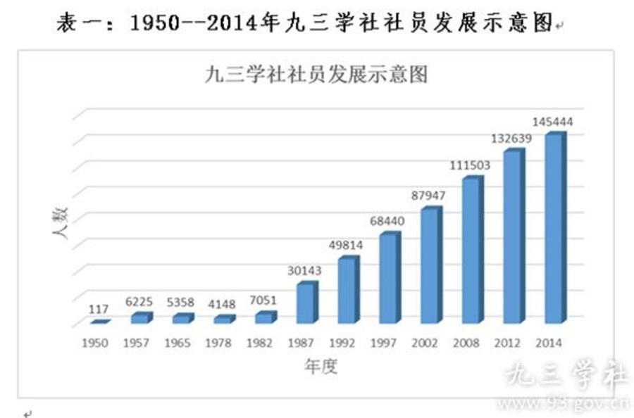 据九三学社中央组织部最新统计数据显示,截至今年上半年,九三学社社员总数达145444名,较去年同期增加6506名,同比增长4.68%;基层组织总数达5653个,比去年同期增加157个,增幅为2.86%。