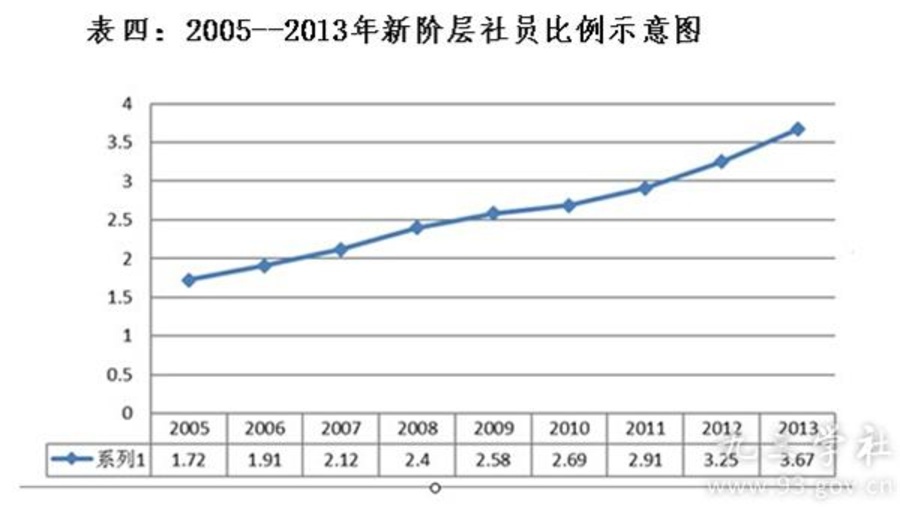 四是发展空间逐步扩大。自2005年全社实施《九三学社中央关于加强组织建设的若干规定》,确立了新时期“在坚持组织发展重点分工的前提下,根据工作需要,适当发展从事经济、管理、法律、文化等人文社会科学方面工作及政府部门、新的社会阶层中有较强代表性的优秀知识分子入社”的组织发展原则,新阶层人士的组织发展呈稳步提高趋势。截至去年底,共有新阶层社员5243人,占总数的3.67%,较去年同期增长0.52个百分点。