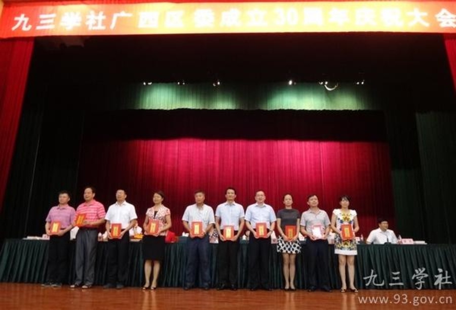 会议隆重表彰了九三学社广西区委2012-2013年度的先进集体和先进个人,举行《九三学社广西地方组织志》和《风雨同舟三十年——九三学社广西区委发展历程》画册发行仪式。
