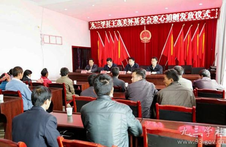 11月20至21日,北京九三王选关怀基金会副秘书长赵鑫赴贵州省最边远贫困威宁自治县石门乡,向2014年高考进入二本以上并到校就读的陈永进等17名学子颁发了5000至8000元(贵州省内5000元、贵州省外8000元)助学金。这是落实全国政协常委、九三学社中央常务副主席、北京九三王选王选关怀基金会副理事长邵鸿今年7月在威宁自治县调研期间,要求对石门乡部分考上大学的优秀学生进行扶助的具体措施,目的是化解贫困学生的经济困难,发挥对石门乡乃至威空县贫困学生求学择校的导向作用,进一步丰富九三学社对威宁的长期对口帮扶形式。这笔经费是原博时基金会董事长周道志先生出资捐助的。因受助学生目前在校就读,特以现金形式发放到学生家长手中,基金发放仪式上赵鑫作了讲话,威宁自治县副县长谭凯宣读了九三王选关怀基金会《关于资助威宁县石门乡2014年高考二本以上录取学生的决定》 ,要求受资助学生要珍惜机遇,厚积薄发,充分展现石门人坚韧上进的精神和反哺故里的优良品质,对优异的成绩回报家乡,回报社会,早日成为祖国的栋梁之材。本次资助金发放仪式参与并陪同的有威宁自治县教育局、毕节试验区联络联系办和石门乡有关领导。