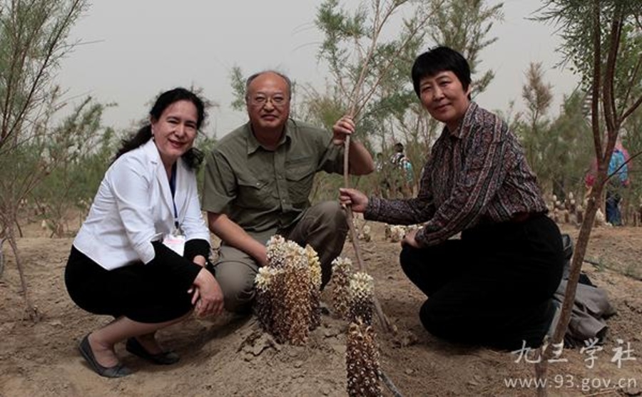 国家实施“一带一路”战略决策后,作为以科技界人才汇聚为优势的九三学社,十分关注新疆的民族团结和社会稳定。早在2000年5月,韩启德主席就出席了在北京举行的第一届肉苁蓉暨沙生药用植物学术研讨会。他对九三学社社员牵头在和田地区推广肉苁蓉产业的发展非常关心,充分肯定这个既能防沙治沙、又能帮助群众致富的好项目对促进民族团结和社会稳定的意义,确定了九三学社与新疆自治区开展合作的部署。在韩启德主席的统筹安排下,5月九三学社丛斌副主席率队到新疆和田,调研肉苁蓉生态产业发展并出席以“全面推进肉苁蓉生态产业,促进西部生态文明与经济发展”为主题的研讨会。