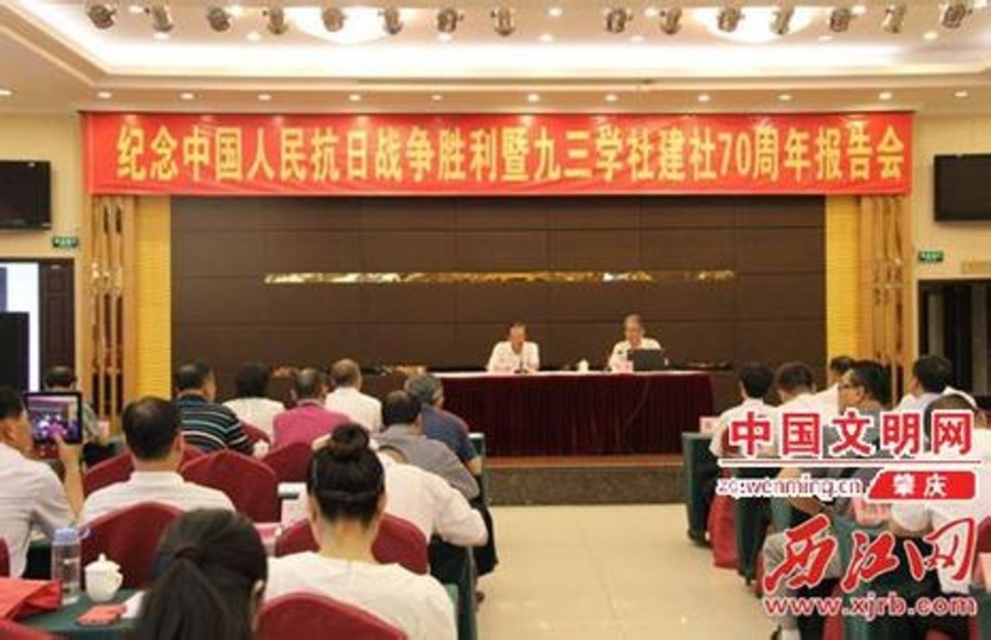 九三学社肇庆市委8月8日在肇庆举办纪念中国人民抗日战争胜利暨九三学社建社70周年报告会。会议邀请九三学社中央坚持和发展中国特色社会主义学习实践活动宣讲团成员、北京清大筑境规划建筑设计研究院副院长许进做社史报告。