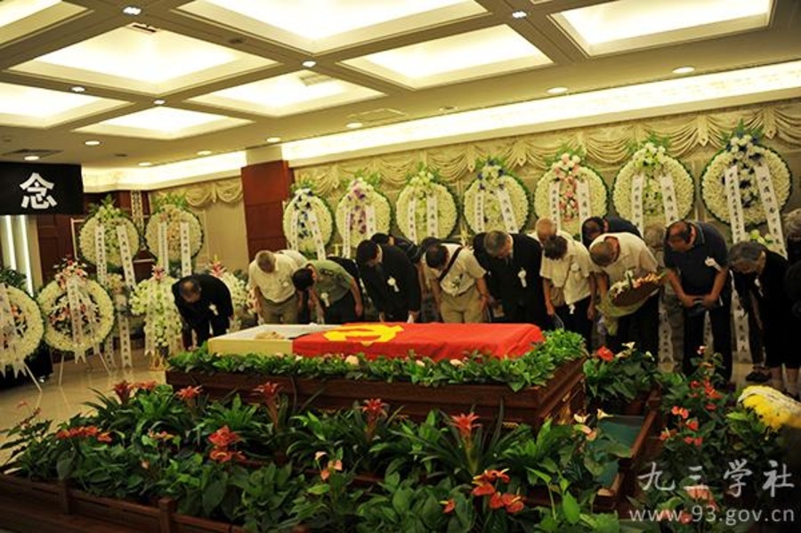 九三学社中央副主席马大龙,九三学社北京市委专职副主委方炎、秘书长刘永泰和西安交通大学、北京大学医学部的有关领导及方亮先生生前好友、学生百余人在哀乐声中缓步来到方亮先生遗体前肃立默哀,向遗体三鞠躬,并与方亮先生亲属一一握手,表示慰问。