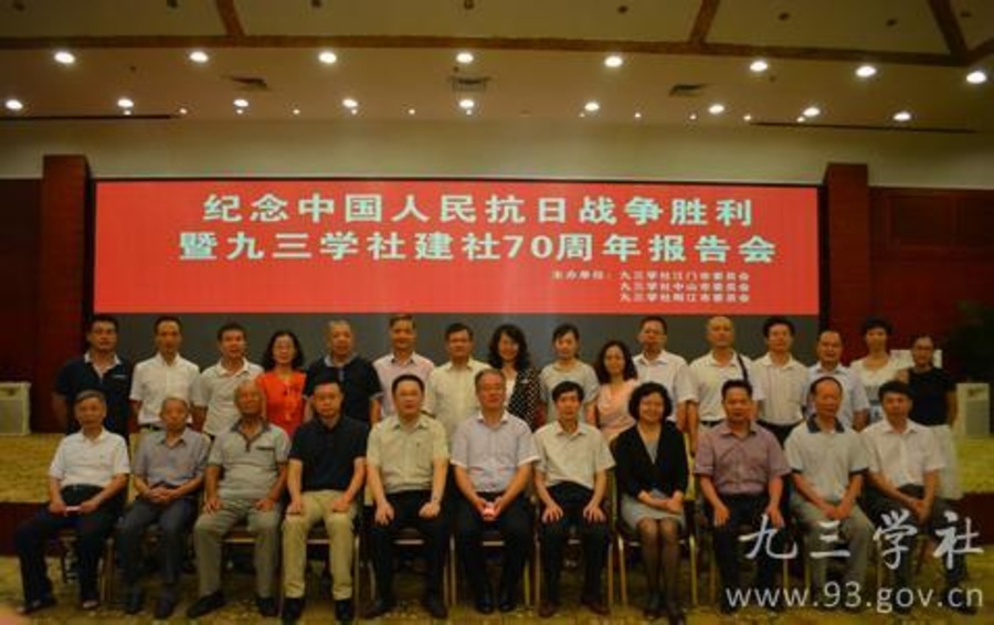 九三学社江门、中山、阳江市委员会8月9日联合在江门举办“纪念抗战胜利暨九三学社建社70周年”报告会。会议邀请九三学社中央坚持和发展中国特色社会主义学习实践活动宣讲团成员、九三学社主要创始人许德珩之孙许进作《我对九三学社的几点认识》的报告。