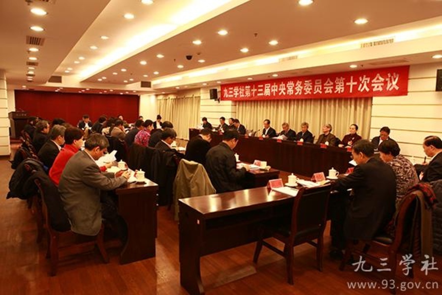 九三学社第十三届中央常务委员会第十次会议3月6日晚在京举行。会议学习贯彻十二届全国人大三次会议和全国政协十二届三次会议精神;审议通过了《九三学社建社70周年纪念活动筹备方案》、《九三学社中央文化工作委员会增补副主任名单》,研究了九三学社中央十三届十一次常委会筹备工作。九三学社中央主席韩启德主持会议并讲话。九三学社中央常务副主席邵鸿,副主席谢小军、张桃林、赖明、马大龙、丛斌、赵雯、卢柯、武维华、印红出席会议。