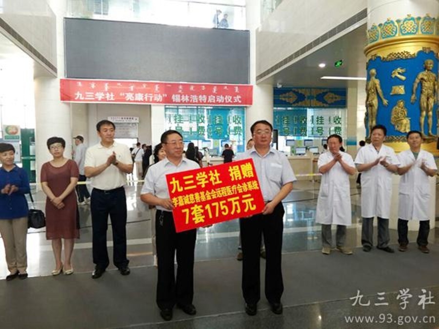 在启动仪式上,边占喜副主委代表九三学社内蒙古自治区委员向锡林郭勒盟捐赠了7套远程医疗会诊系统,价值175万。据悉,针对内蒙古自治区地域广阔,医疗力量分散,农牧民就医不便的状况,九三学社内蒙区委积极联系李嘉诚慈善基金会,发展远程医疗项目,目前已向区内盟、市捐赠远程医疗会诊系统76多套,价值2280多万。