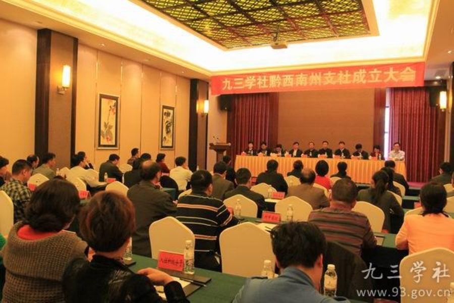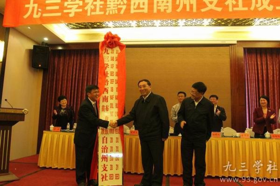 2015年3月28日,春光明媚的黔西南州迎来多党合作大家庭的添丁之喜——九三学社黔西南州支社成立大会在兴义市隆重召开,标志着贵州省多党联合推动星火计划科技扶贫合作攻坚事业又添一支生力军。九三学社中央副主席、中国工程院院士丛斌莅临大会祝贺并亲自授牌。九三学社贵州省委主委、贵州省农科院副院长黄宗洪,中共贵州省委统战部副部长王茂爱,中共黔西南州委常委、州委秘书长陈国芳等出席会议。