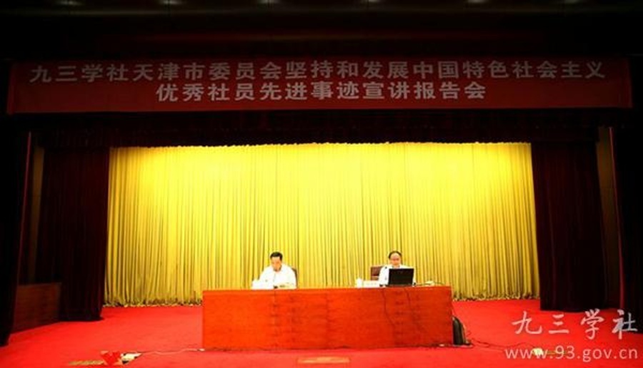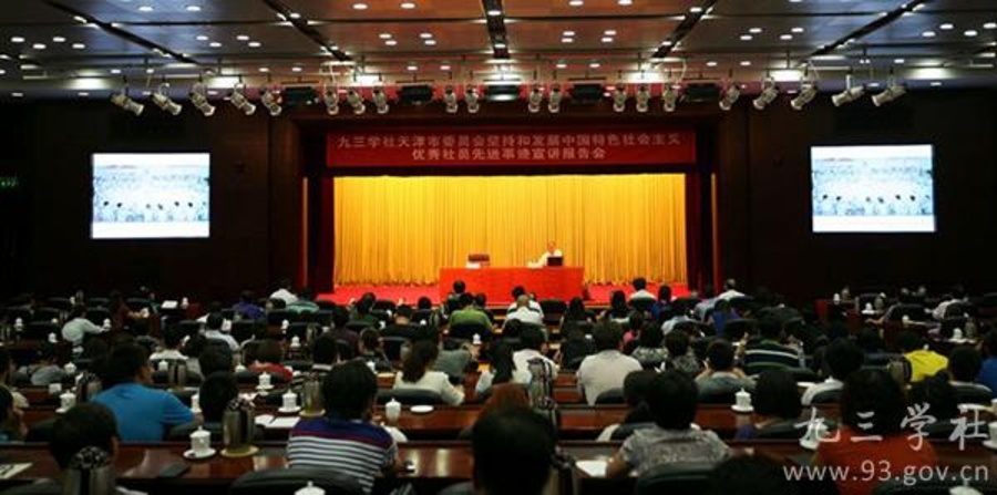 8月25日,适逢九三学社创建70周年和中国人民抗日战争暨世界反法西斯战争胜利70周年前夕,为使天津广大社员持续深入地了解九三学社历史,进一步加强自身建设,更好地履行参政党职能,九三学社天津市委在天津大礼堂国际会议厅举办坚持和发展中国特色社会主义优秀社员先进事迹宣讲报告会。会议邀请九三学社中央坚持和发展中国特色社会主义学习实践活动宣讲团成员、北京清大筑境规划建筑设计研究院副院长许进和九三学社中央科普工作委员会副主任、北京大学医学部社会医学与健康教育系教授钮文异作报告。天津市政协副主席、九三学社天津市委主委陈永川,副主委庞学光、黄骁卓,秘书长张玉芳出席报告会。