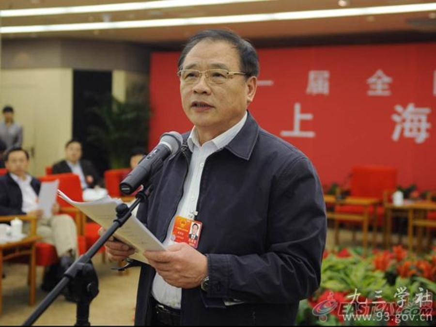 十一届全国人大五次会议上褚君浩向与会代表介绍自己提出的议案
