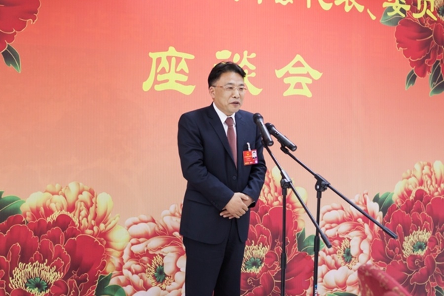 九三学社中央常务副主席邵鸿亲切风趣的主持,不时迎来与会人员会心的笑声。副主席谢小军、张桃林、马大龙、赖明、丛斌、赵雯、卢柯、武维华、印红分坐在代表委员中间,热情地招呼每个人,详细询问大家的工作生活情况。大厅里,代表委员围坐在十几张圆桌边,就着一杯清茶,倾听着、表达着、交流着。