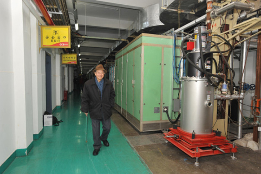 2012年2月,谢家麟在北京正负电子对撞机束调管长廊。