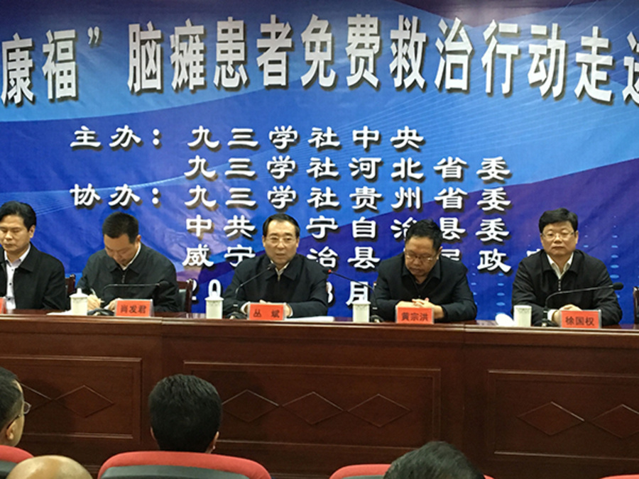 春寒料峭,小雨淅沥。3月24日下午,在九三学社中央社会服务部的部署和安排下,九三学社“同心康福脑瘫患者免费救治行动”正式落地威宁,九三学社中央副主席丛斌,社会服务部部长徐国权来到县人民医院,亲切看望患者,详细了解情况,耐心地与患者家属进行面对面交流。九三学社河北省委秘书长王建民带领河北脑系医院专家一行5人,千里迢迢送医下乡,对这些山里的孩子进行医疗救助。
