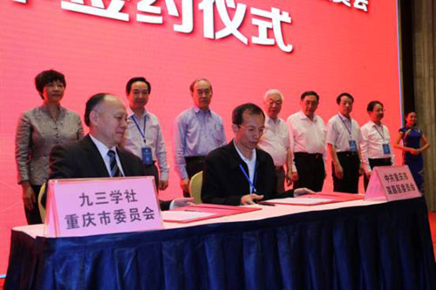 会上,谢小军代表九三学社重庆市委与中共荣昌区委书记谢金峰签署了“九荣合作”协议。