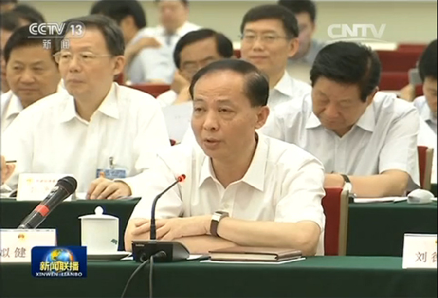 7月2日上午,全国人大常委会委员长张德江在人民大会堂主持召开十二届全国人大常委会第二十一次会议联组会议。会议结合审议全国人大常委会执法检查组关于检查食品安全法实施情况的报告进行专题询问。全国人大常委会委员、九三学社中央常委姒健敏就如何完善食品安全标准体系发问。
