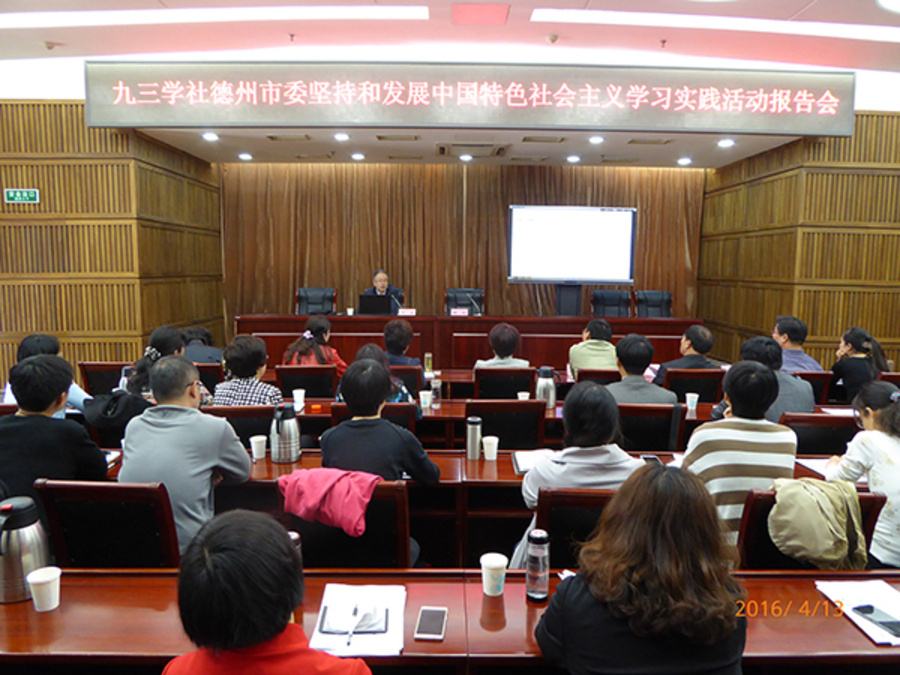 宣讲由德州市人大常委会副主任、九三学社德州市委主委钟玲主持,德州市50多名骨干社员聆听了宣讲。(戴连强)