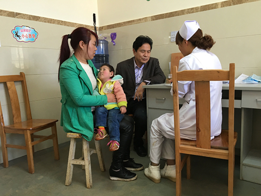 3月25日下午13点30分,在威宁县人民医院四楼的眼科诊疗室内,一个穿白大褂的女医生跟一个穿灰色西装的中年人说,“游院长,你们几个先去吃饭吧,盒饭都凉了。”中年人摆摆手,一边亲身送走病人家属,一边向门外的值班护士说,“来吧,下一个”。此刻,已经是这位中年人在这个临时安排的吵杂不堪、气味难闻的诊台边站着第3个日头了。这个中年人叫游国师,他是河北石家庄脑系医院的院长。他受九三学社中央社会服务部委托带着医疗队一行4人来到威宁县人民医院,为全县脑瘫患者做免费救治活动。由于县残联对病源数量的预估不足(预估是50人,最后筛查患者是425人),导致医疗队专超负荷工作。爽朗的游院长和几位专家用默契的行动表示,不筛查完最后一位患儿他们不会离开诊疗室。