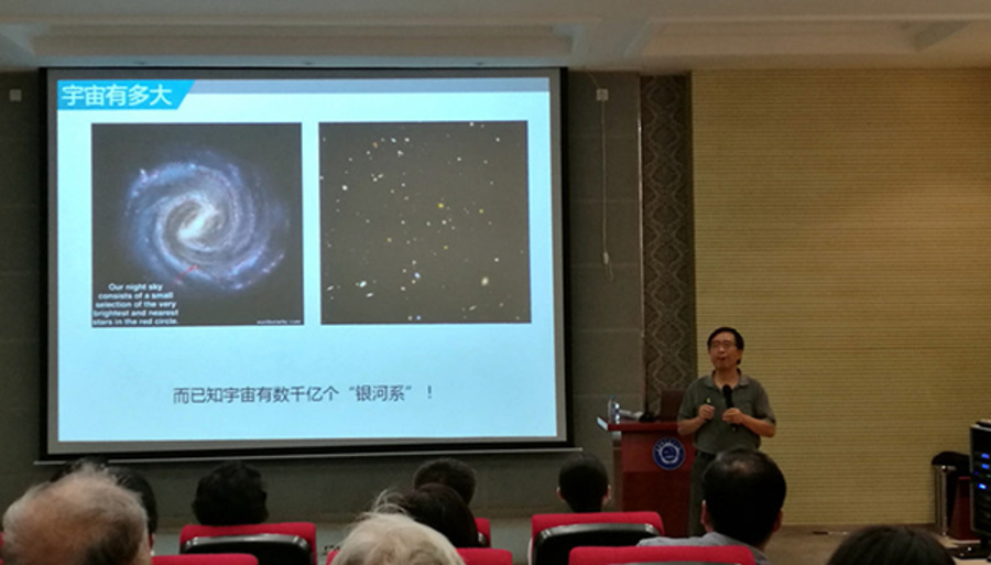作为世界首颗量子卫星“墨子”号负责人,潘建伟以《探索的动机》为题作专题报告,这也是潘建伟在“墨子”号成功发射后做的首场科普报告。潘建伟指出,科研工作者探索的动机就是为了让人类达到一种心灵的自由和安宁。他介绍了量子力学的基本原理与人类生活的密切关系;量子力学和相对论结合在一起之后,科学家可以更好地探索宇宙的起源。他说,近年来量子科技创新团队在一系列创新超越的基础上,致力于推动量子通信技术在国防、政务、金融、民用、商务等领域的应用,在较短时间内取得了突破性进展,尤其是8月16日,长征二号丁运载火箭成功将世界首颗量子科学实验卫星“墨子号”发射升空,更标志着我国空间科学研究又迈出了重要一步。