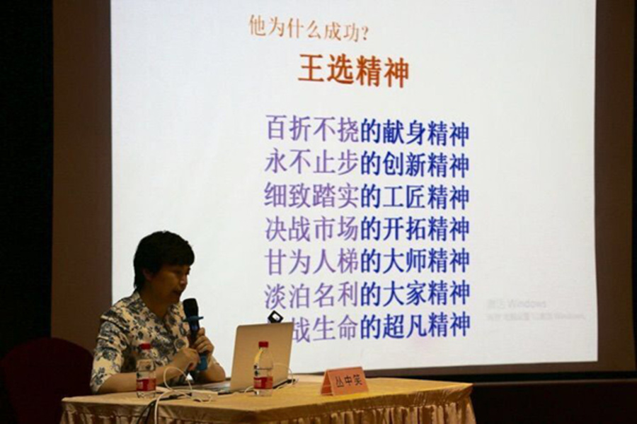 丛中笑于1998年开始任王选秘书,曾长时间在王选身边工作。她以“他是谁?”问题式切入主题,用一个个生动感人的事例讲述了王选的人生历程,以通俗科普的方式讲解了汉字激光照排技术以及该技术引发中国印刷技术革命、使汉字和中华文明在信息时代得以传承的伟大意义,启发听众深入思考王选为什么会成功,什么是王选精神。