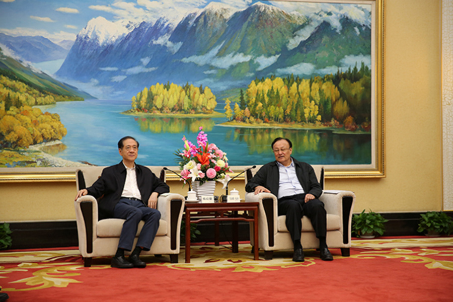 正在新疆调研九三学社参与“一带一路”社会服务工作的全国政协副主席、九三学社中央主席韩启德,9月7日在乌鲁木齐会见中共新疆维吾尔自治区委副书记、自治区主席雪克来提•扎克尔。