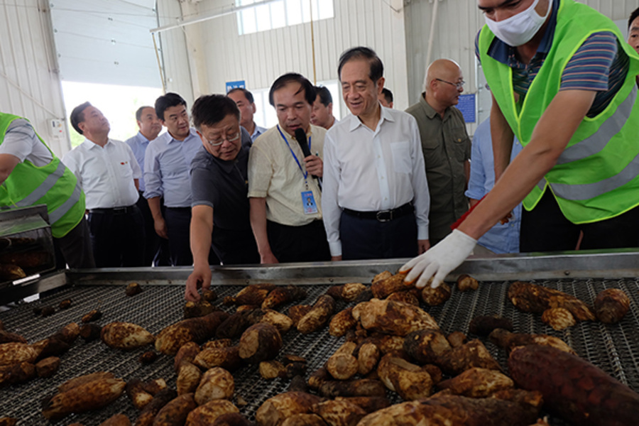 9月6日下午,韩启德参观肉苁蓉企业加工生产线