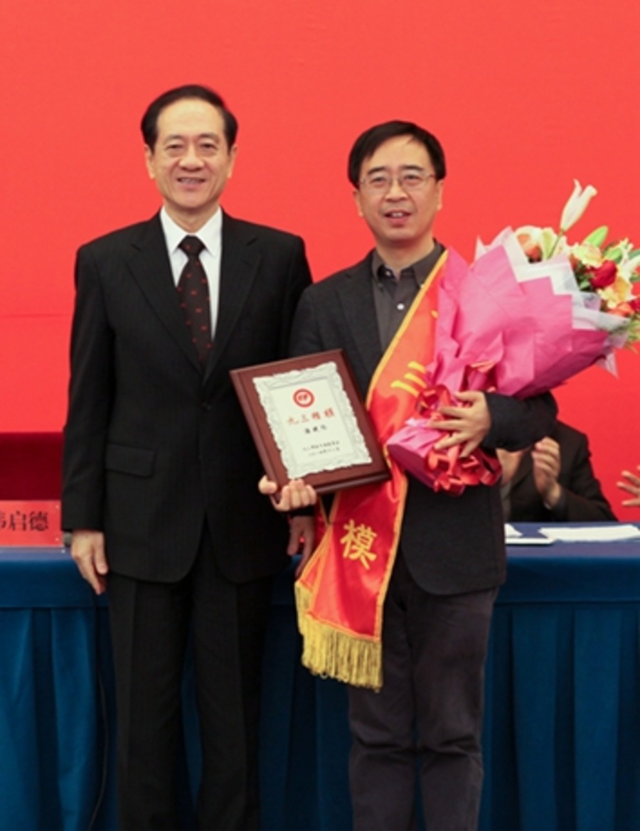 2014年,潘建伟被九三学社中央授予首批十大“九三楷模”之一。他的颁奖词中这样写道:“……他在世界科技之林为中国赢得了一席之地。他是当代中国知识分子的骄傲,他是15万九三人的自豪。”