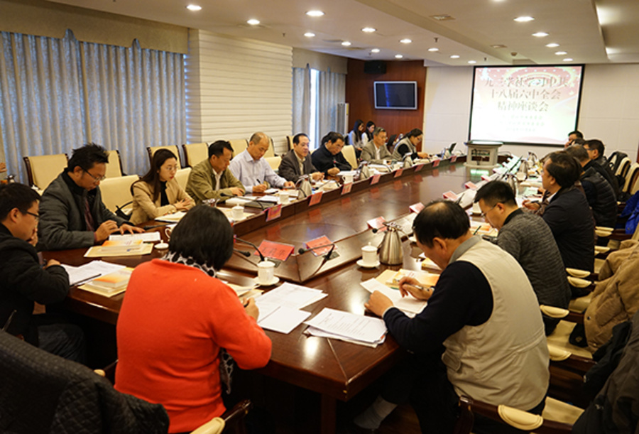 11月8日,九三学社中央和九三学社北京市委在京联合召开座谈会,学习座谈中共十八届六中全会精神,全国政协副主席、九三学社中央主席韩启德出席会议并讲话。