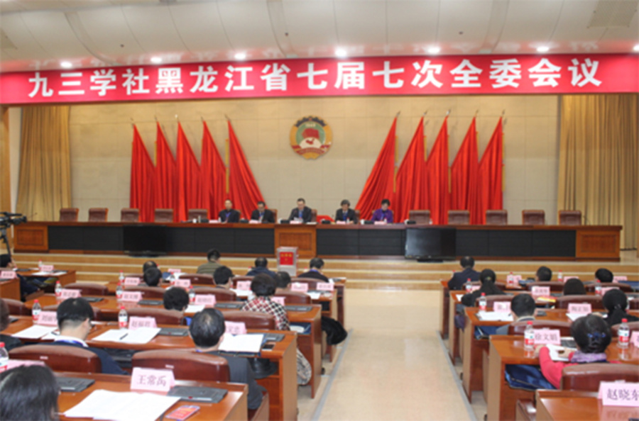 九三学社黑龙江省七届七次全委会议12月19日在哈尔滨市召开。会议主要议程是:学习贯彻中共十八届六中全会精神;审议九三学社黑龙江省第七届常委会2016年工作报告并通过相关决议;推荐九三学社黑龙江省第八届委员会班子人选。黑龙江省人大常委、省社会主义学院院长、九三学社黑龙江省委主委庞达出席会议并讲话,中共省委统战部副部长郭龙川出席会议并讲话,社省委副主委李振民、张晓丹、朱晓峰、李志平、中共省委统战部党派处长于清申及七届社省委委员出席会议。