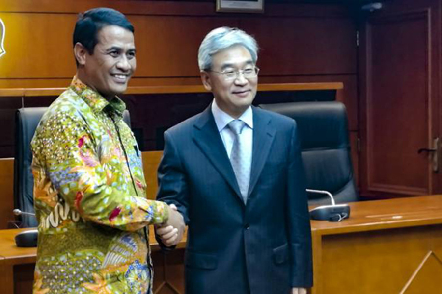 9月19日,九三学社中央副主席、农业部副部长张桃林在雅加达会见印度尼西亚农业部长阿姆兰•苏莱曼(Amran Sulaiman),双方就加强合作交换意见。