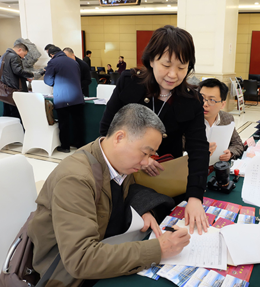 走进北京会议中心,就被委员们的热情融化了。报到现场,有的委员聚在一起握手问候,有的委员全神贯注地研究会议资料,还有的委员正在接受媒体采访。值得一提的是,今年全国“两会”不管是报到处的布置,还是材料的准备都精简务实。没有接送仪式,没有欢迎标语,没有迎宾鲜花。但是,工作人员热情洋溢的笑容、细心周到的服务让委员们不住 “点赞”。现场工作人员登记、发证、取资料,每一个步骤都一丝不苟、有条不紊。随着委员陆续到来,负责提案的小组秘书忙开了,除了登记、汇总委员个人提案外,还要拿出“提案菜单”,请委员选择九三学社中央精心准备的界别联名提案。