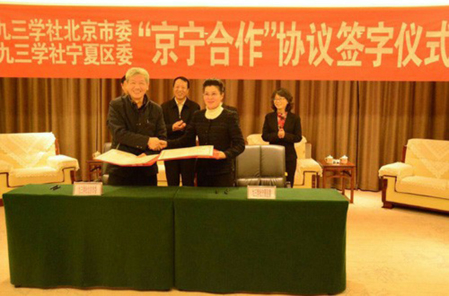 在九三学社中央的指导支持下,借助社北京市委的优势资源,助力宁夏经济社会发展,九三学社北京市委与宁夏区委的签订“京宁合作”协议。马大龙代表社北京市委与社宁夏区委主委马秀珍签订了《九三学社北京市委与九三学社宁夏区委会合作框架协议》。协议强调要坚持从实际出发,立足当前、着眼长远,抓住重点、务实有为,提升支援服务效率,打造社会服务新品牌,充分整合和利用各种资源,创新合作方式,努力为推进宁夏经济社会发展作贡献。