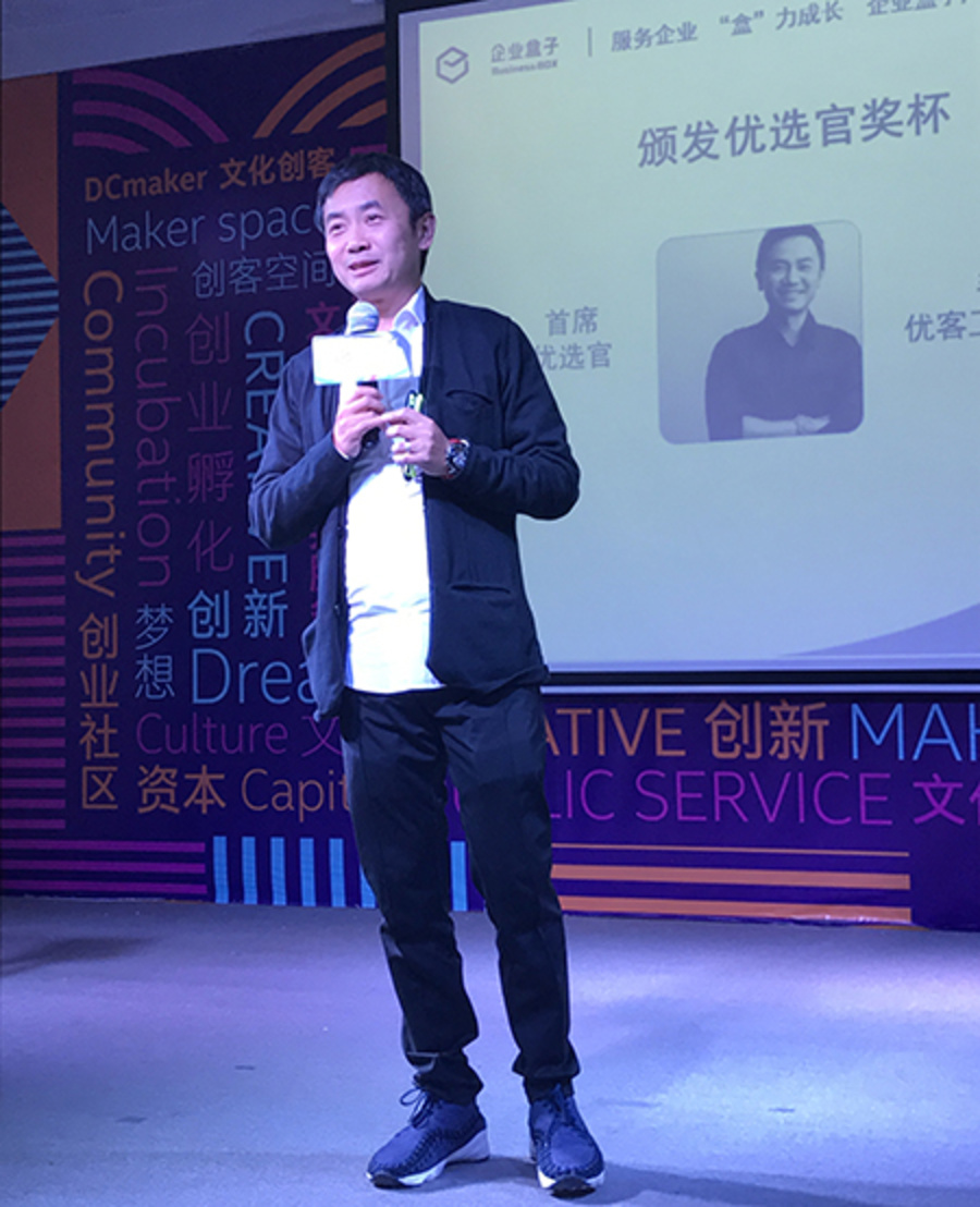 毛大庆受聘“企业盒子”首席优选官并做主题分享。他分享了从吸引“企业盒子”创始人范宇加入优客工场到范宇创立企业盒子的整个过程,他鼓励范宇尝试去做企业服务平台,并参与了企业盒子的早期投资。他还建议其他的众创空间多多使用企业盒子服务,共同助推企业盒子的成长,更好地服务于创业企业。