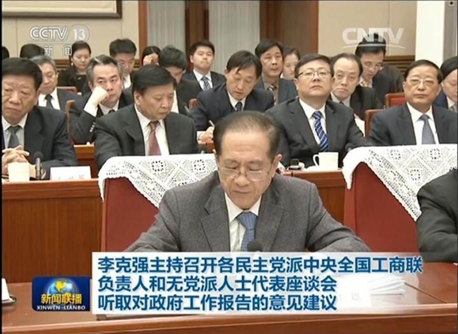 李克强说,中国共产党领导的多党合作和政治协商制度为各民主党派、工商联和无党派人士参政议政提供了坚实制度保障。召开这次座谈会,主要是听取大家对政府工作报告的意见建议,凝聚共识,共同把政府各项工作谋划好。李克强感谢各民主党派、工商联和无党派人士一直以来对政府工作的关心和支持。他说,大家的意见建议对修改好报告和改进政府工作有很大帮助,国务院将认真研究采纳。一年来,在以习近平同志为核心的党中央坚强领导下,全国上下共同奋斗,我国经济社会发展取得显著成绩,经济运行保持在合理区间,增速位居世界前列,更优异的是新增城镇就业人数比上年又有提高,连续4年保持在1300万人以上,结构优化升级呈现良好势头,新动能对经济发展支撑作用日益明显,实现了“十三五”良好开局。这其中也凝聚了各民主党派、工商联、无党派人士的智慧心血。你们发挥各自优势,围绕党和国家中心工作及经济社会发展各方面,提出很多有价值有分量的决策参考和政策建议,对推动政府工作发挥了很重要的作用。李克强指出,今年国内外环境依然复杂严峻,要坚持稳中求进工作总基调,全面做好稳增长、促改革、调结构、惠民生、防风险各项工作。我们有信心、有能力应对好来自各方面的挑战,促进经济平稳健康发展和社会和谐稳定。希望各民主党派、工商联和无党派人士积极建言献策,大家同舟共济、坚定信心,真抓实干、埋头苦干,干出一片新天地,促进中国经济保持中高速增长、迈向中高端水平。
