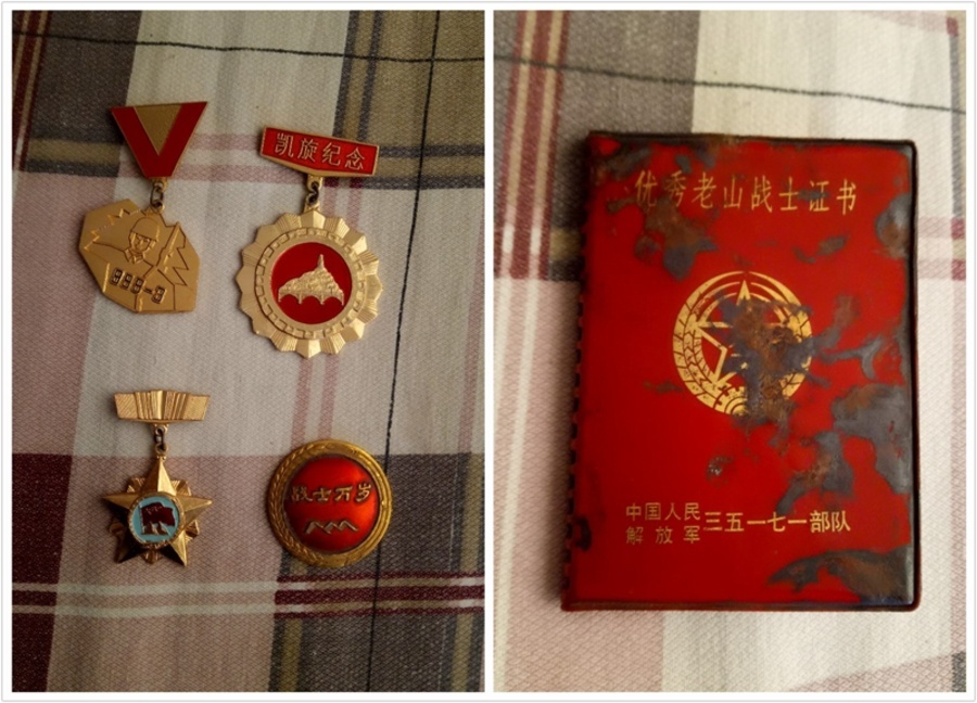 厚重的黄土地,养育了朴实的陕北人。忠诚和奉献是革命老区人民金子般的品格。77岁老人李树珍给我们展示了4块珍贵的勋章和1本优秀老山战士证书。1983年10月23日,老人亲自给19岁的儿子李乃前带上当兵入伍的大红花。1985年6月,年仅21岁的李乃前奔赴云南老山前线参加对越自卫反击战。担任代理排长期间,李乃前组织所属人员先后共发射“107”火箭弹27发,取得摧毁越军工事13个,重机枪1挺,毙敌17人,伤敌21人的赫赫战绩。“长征胜利80年了,我们对红军的感情从来没有变过。人不能忘本,我们是喝着延河水、吃着高粱馍馍长大的。改革开放38年了,问题太多了,慢慢来。三年五年,五年八年,一定能解决。我相信共产党,相信习近平!”李树珍深情地说。
