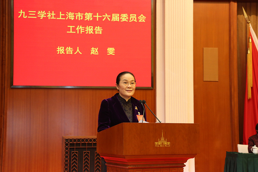 赵雯代表九三学社上海市第十六届委员会作了题为《不忘初心 砥砺前行 努力建设高素质参政党省级组织》的工作报告。