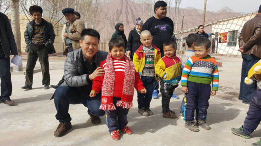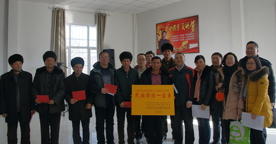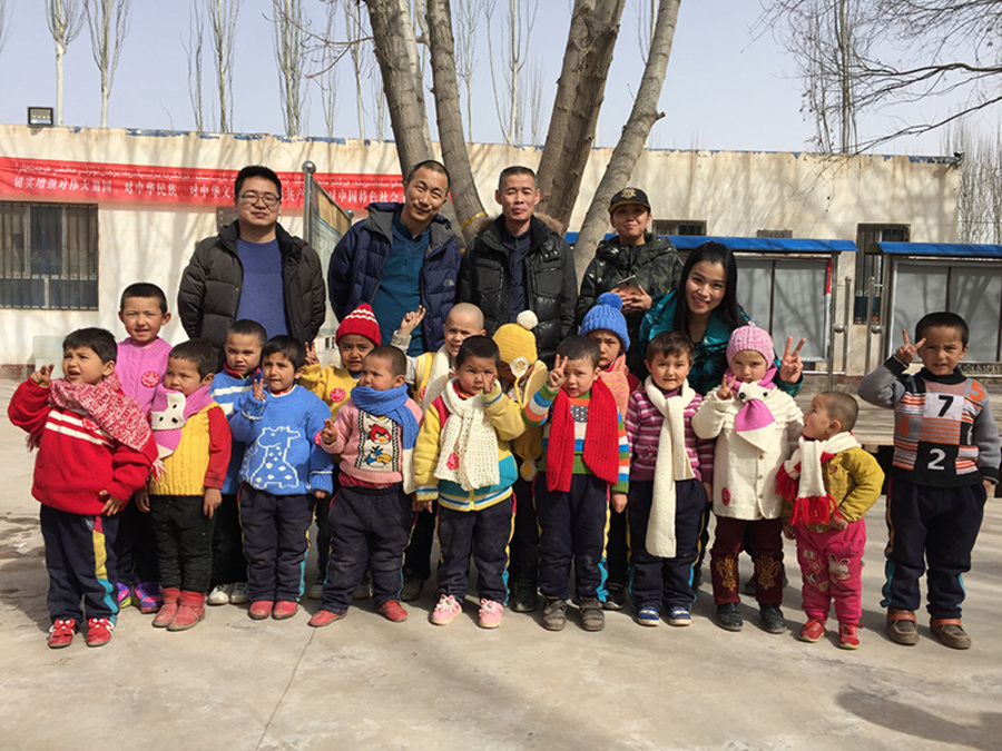 3月1日,在新疆阿克苏地区柯坪县盖孜力克镇良种场村捐赠现场