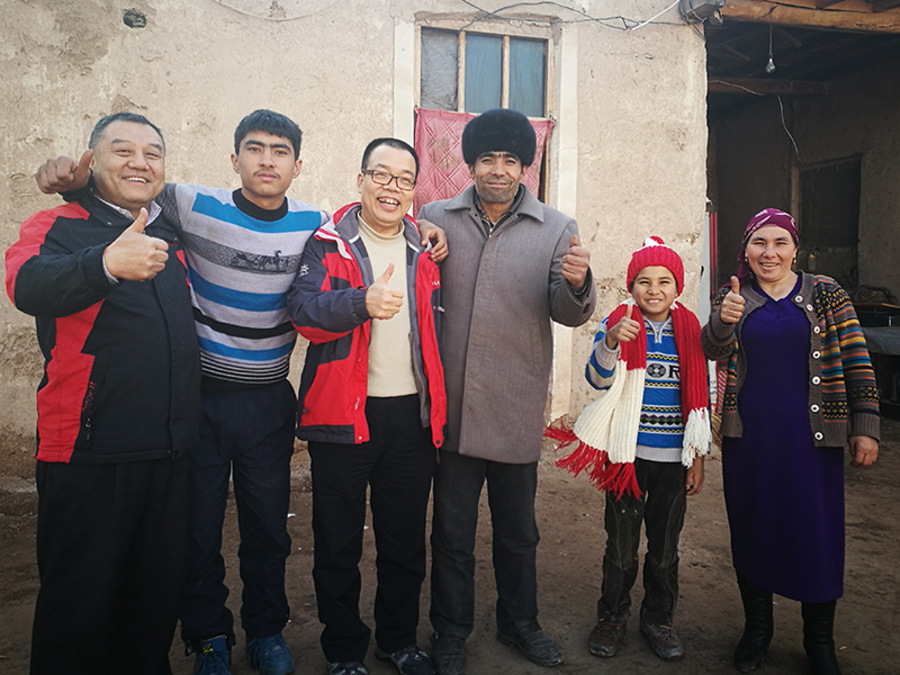 1月18日,在新疆阿克苏地区柯坪县玉尔其乡阿热阿依玛克村捐赠现场