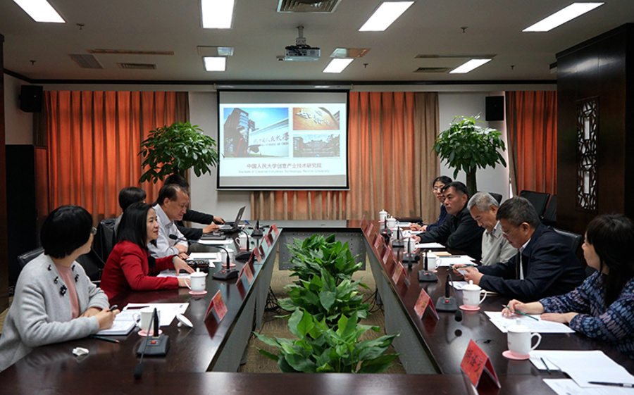 3月22日下午,全国政协副秘书长、九三学社中央常务副主席邵鸿,全国政协常委、提案委副主任、九三学社中央副主席赖明赴中国人民大学创意产业技术研究院调研。