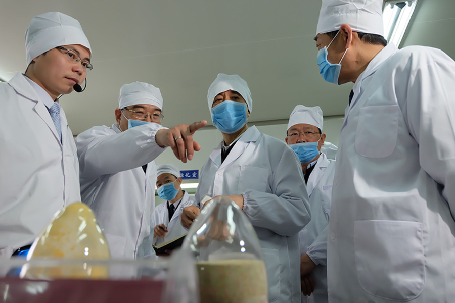 3月31日,韩启德(中)调研湖北博大生物股份有限公司。
