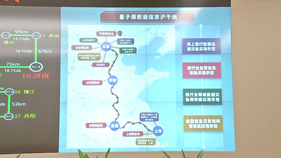 和高速铁路“京沪干线”一样,量子通信“京沪干线”将大大改变我们的生活,刷卡购物、银行转账、政务通信都会变得更加安全。(央视记者 帅俊全)