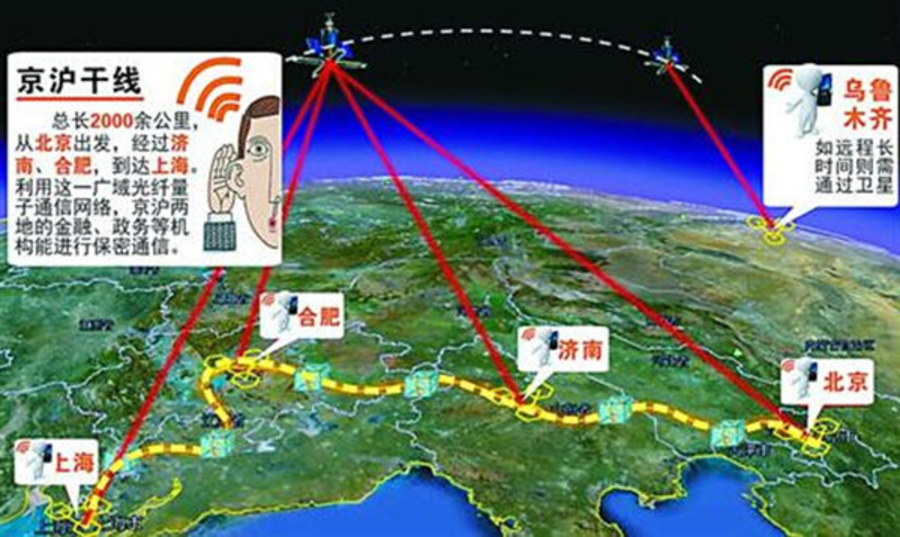 潘建伟介绍,量子通信“京沪干线”全长2000多公里,经过合肥、济南等沿线主要城市,共设有32个量子通信节点。量子,是质量、能量等各种物理量的最小单元,而且它也要以某种粒子状态存在。比如光,那么一个光子就是一个量子。由于神奇的量子具有不可分割和不可克隆的特性,而且一旦被窃取就会自动毁灭,所以经过量子加密的信息从原则上来讲是绝对安全的。