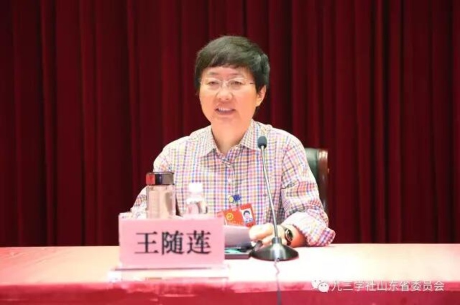 王随莲代表九三学社山东省第六届委员会作工作报告。