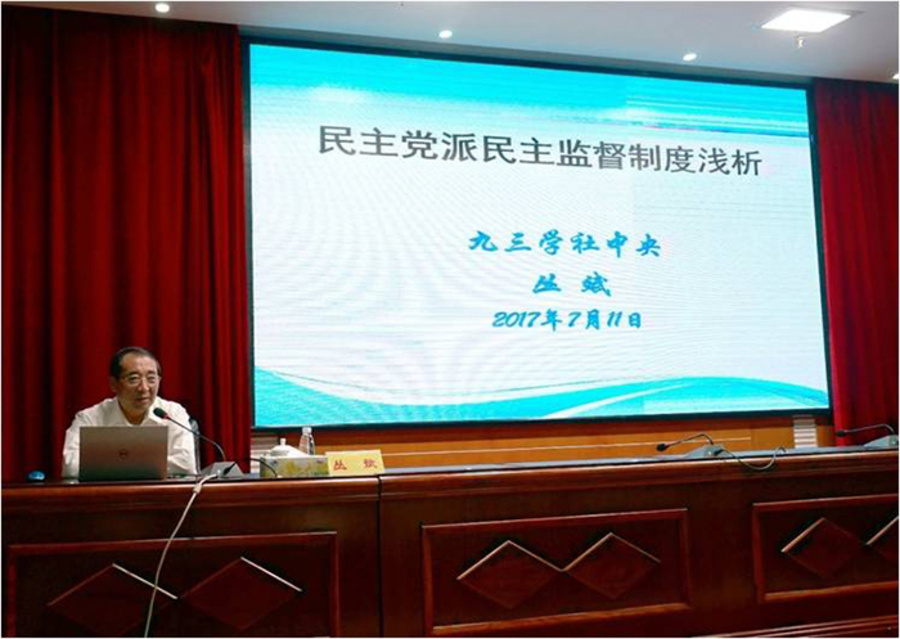 7月11日,全国人大常委会委员、法律委员会副主任委员,中国工程院院士,九三学社中央副主席丛斌应邀在湖南长沙出席由中央社院主办的中国政党制度研究中心第十五届年会,并作《民主党派民主监督制度浅析》主题报告。