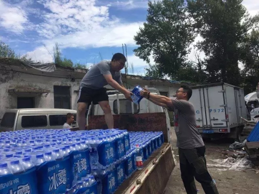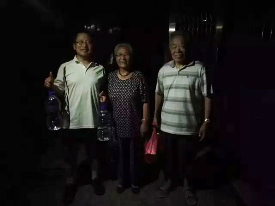 市直开发区委员会主委孙驭蛟和经委会主任张福森等人14日晚10:00徒步1个小时到口前养生谷小区为部分受灾群众送去水和食品,价值1000元。