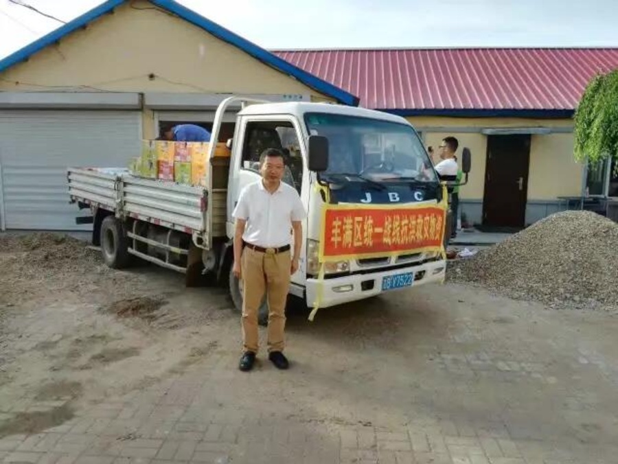 社市委副主委姚春明随人大代表慰问组慰问受灾群众并送去救灾物资。
