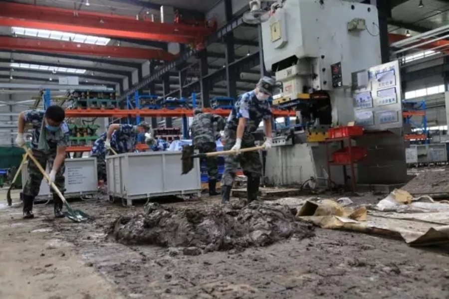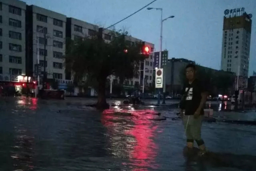 2017年入社的新社员吉林文投公司李心尧参加2017年7月17、18日对永吉县经开区两个车间厂房抗洪抢险工作。