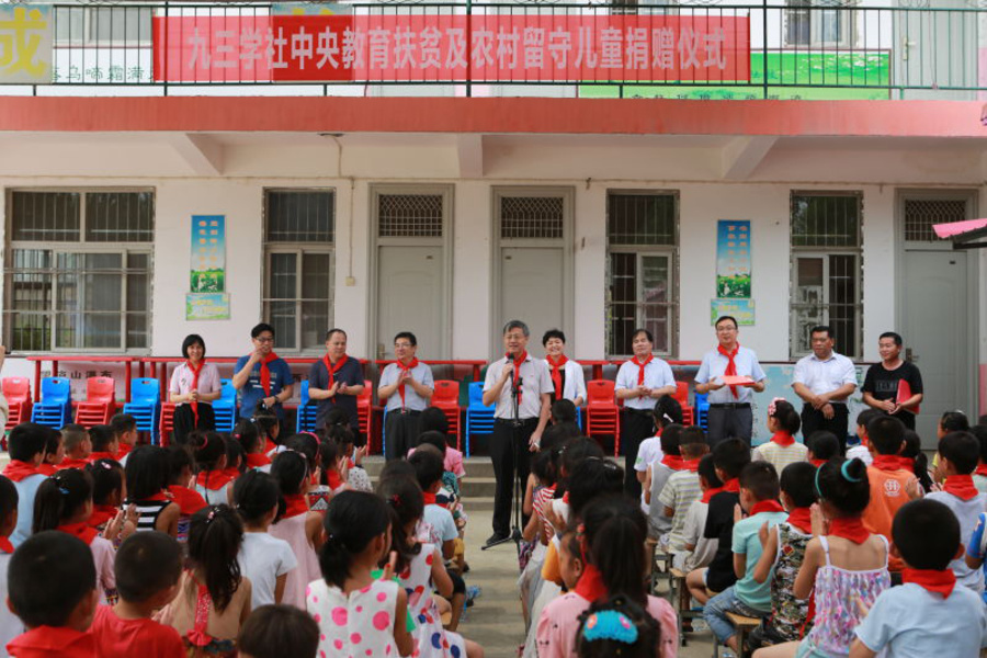 期间,九三学社中央向漯河市源汇区大刘镇白寺小学捐赠了价值5万元的课桌椅和书架,专家学者一行出席了捐赠仪式,并实地了解了学校的办学设施改善、教学开展情况。(吴继红)