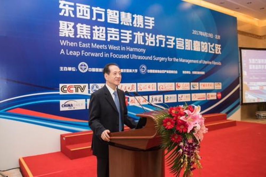 6月19日,中国医师协会、重庆医科大学及中国医师协会妇产科医师分会在全国政协礼堂联合举办“东西方智慧携手——聚焦超声手术治疗子宫肌瘤的飞跃”成果发布会。发布了十二五期间,重庆医科大学超声医疗国家工程研究中心牵头开展的国家支撑计划课题研究——“超声消融子宫肌瘤的前瞻性、多中心、同期非随机平行对照研究”的成果。全国政协副主席、九三学社中央主席、中科院院士韩启德,中国医师协会张雁灵会长,中国医师协会妇产科分会会长郎景和,英国牛津大学教授David William Cranston,九三学社重庆市渝中区委主委、重庆医科大学副校长杨竹出席并讲话。