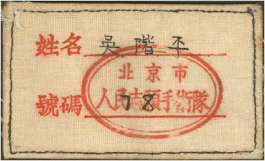 吴阶平保存的抗美援朝志愿手术队臂章(上为正面,下为背面)
