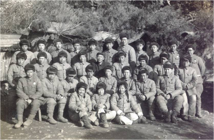 1952年志愿军反细菌战检验队合影(处理)(方亮:三排右4,方亮夫人胡善珠:一排中)